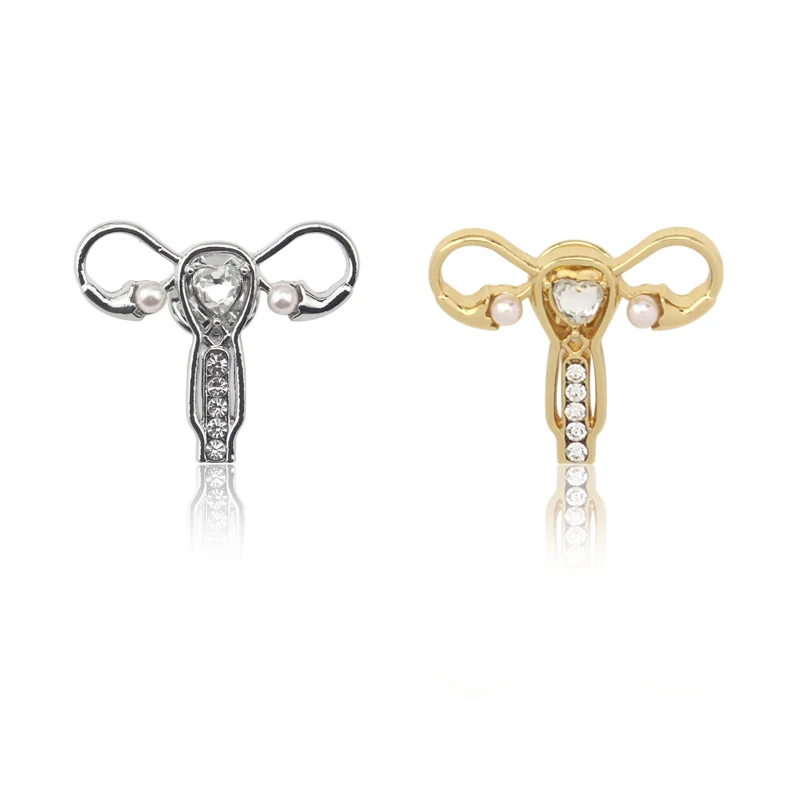 Order Women's Womb Shape Pin Pink Pearl Heart Crystal Gynecology Medicine Symbol Jewelry gift for Female