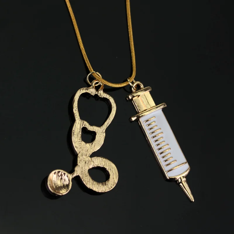 Luxury Medical Stethoscope Syringe Pendant Necklace High quality personality Medical Students Doctor Nurse
