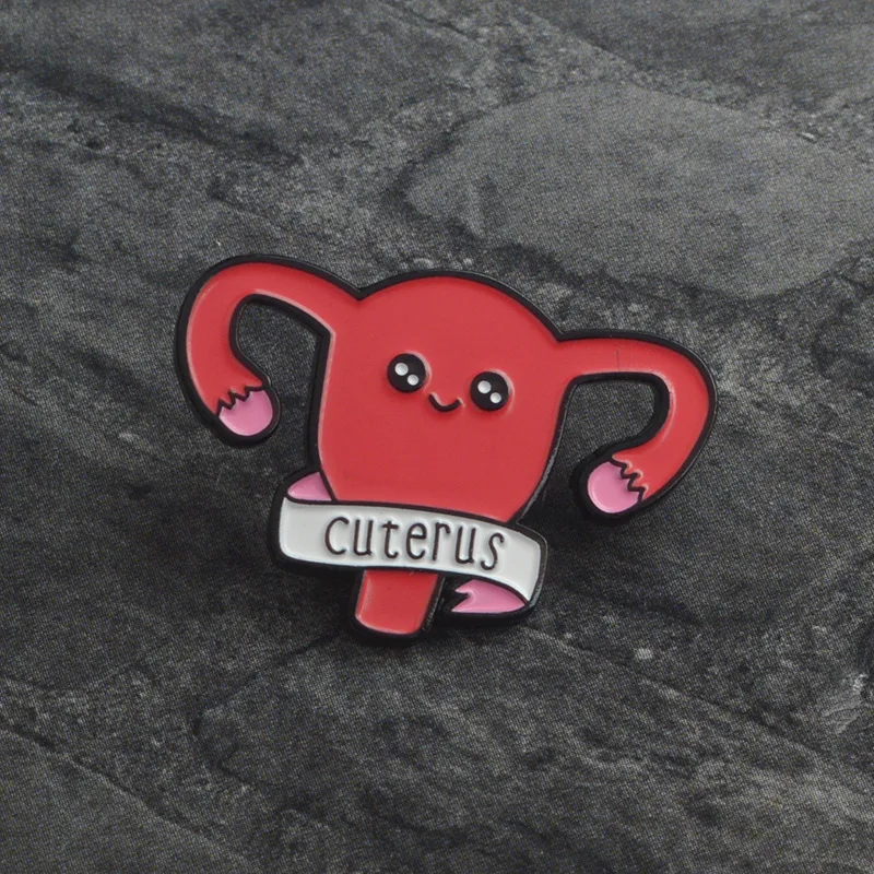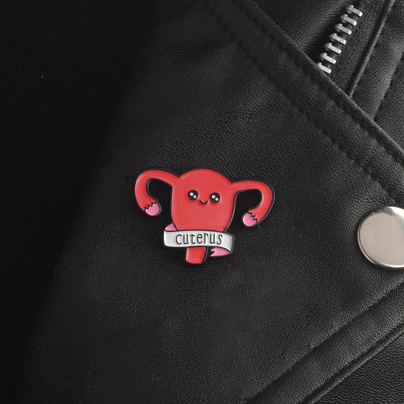 Pre-owned New Cartoon Women's Womb Pin Brooch Human organs shape Uterus Brooches Badge Enamel Pins Medical Je